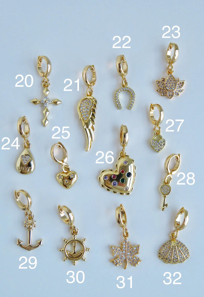 Beautiful 18k gold plated charms to add to your necklace, bracelet or anklet. Each charm has a hinged clasp making it interchangeable so that you can easily clasp the charm on your own and style it the way you like!